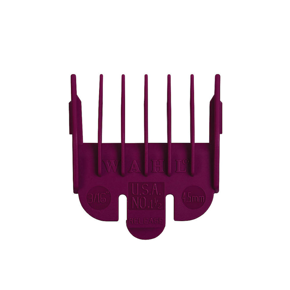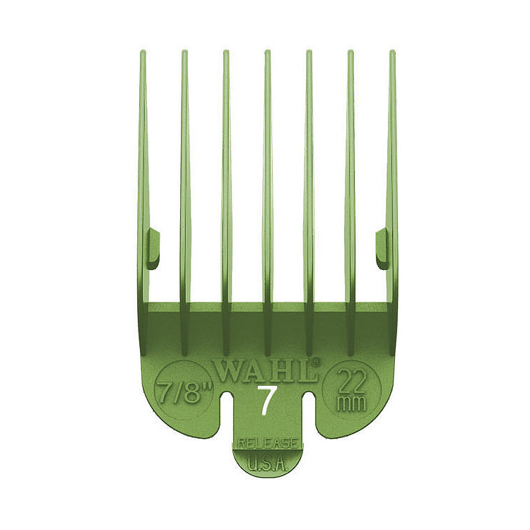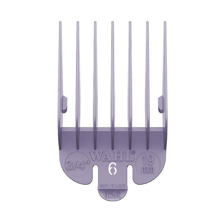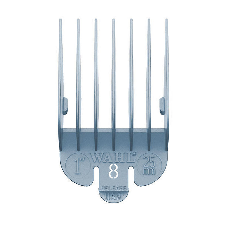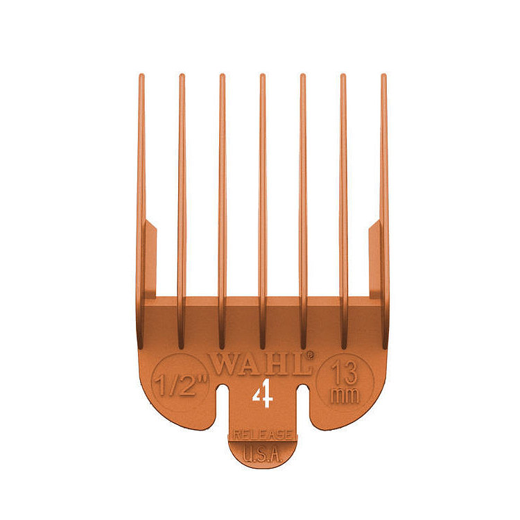 Wahl Attachment Clipper Coloured Combs. Standard comb clipper guards all colour coded for ease of use and available in all these sizes No 1/2 (Green) (1.5mm – 1/16″), No 1 (Red)(3 mm – 1/8″), No 1 1/2 (White)(4.5mm – 3/16″), No 2 (Purple)(6 mm – 1/4″), No 3 (Dark Blue)(10 mm – 3/8″), No 4 (Orange) (13 mm – 1/2″), No 5 (Yellow)(16 mm – 5/8″), No 6 (Violet) (19mm 3/4″), No 7 (Green) (22 mm – 7/8″), No 8 (Light Blue) (25 mm – 1″), please use the drop down box to choose you size.