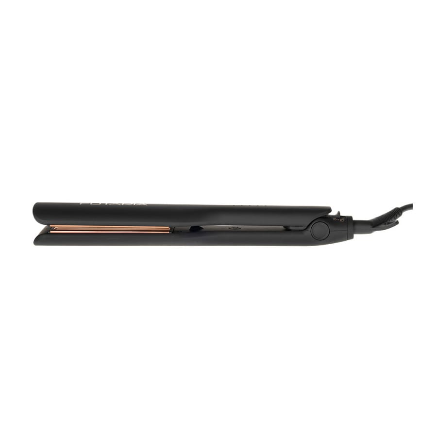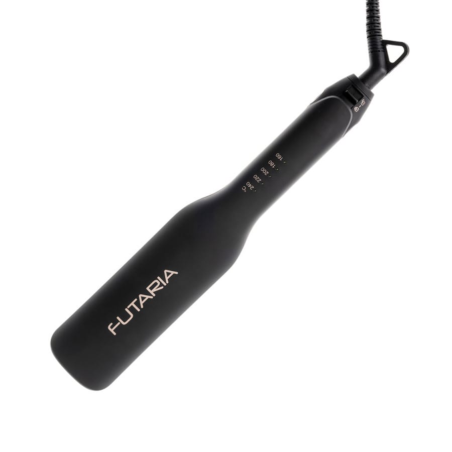 Head Jog Futaria Wide Hair Straightener. Glide through longer, thicker hair with ease with Futaria. The wide Copper Titanium coated floating plates sail smoothly through hair for superior results. A negative ion generator combats static electricity, producing softer, smoother, glossier hair.