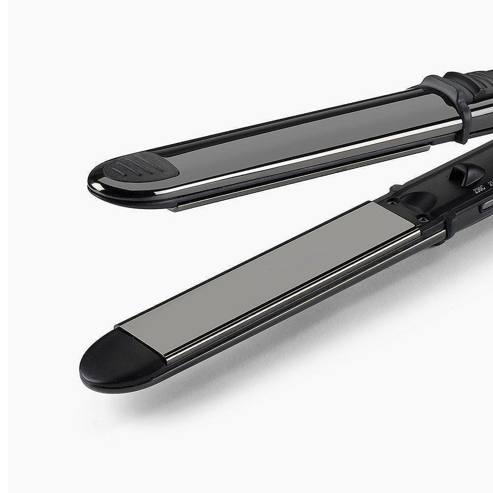 Prima 3100 BaByliss hair straightener’s floating, high-gloss titanium plates glide through even the thickest hair without snagging, while the Advanced Ceramics Heating System delivers ultra-fast heat-up and recovery with even heat distribution throughout.
