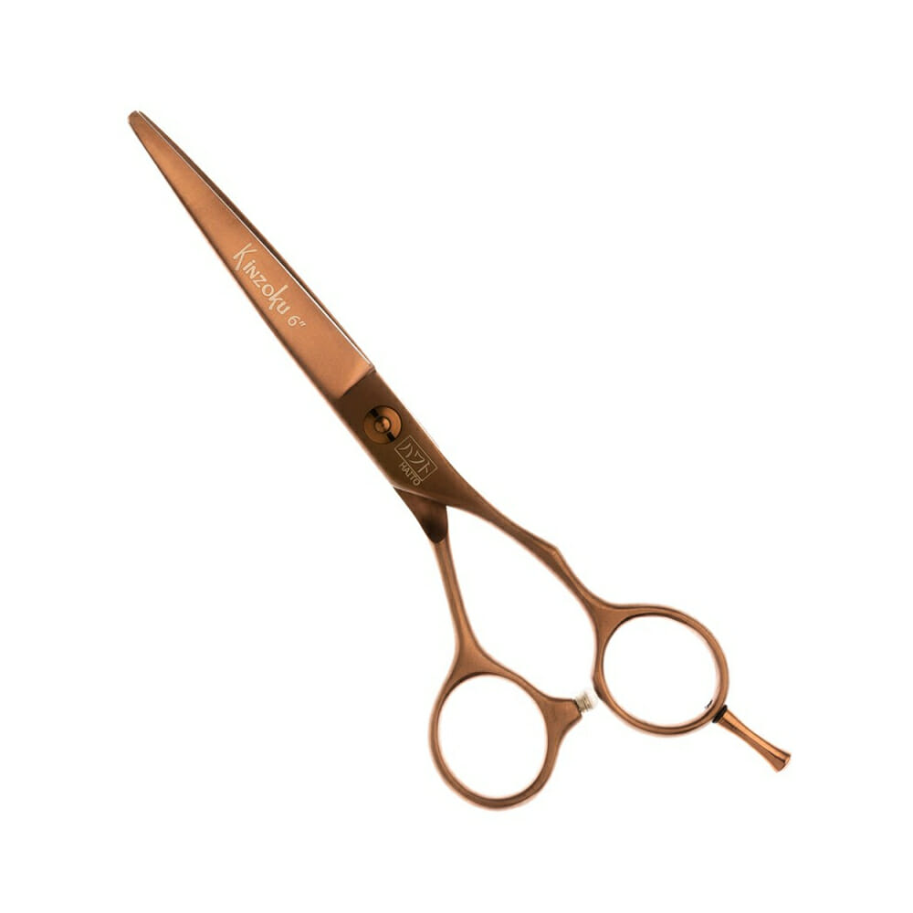 HAITO Kinzoku Hairdressing Scissors. Handmade professional scissors made from Japanese stainless steel with a sword blade design. Semi-offset handle with curved thumb for optimum comfort, support and a more relaxed working position. Designed to reduce stress on the hand, wrist, shoulder and back where hairdressers feel the majority of strain day-to-day.