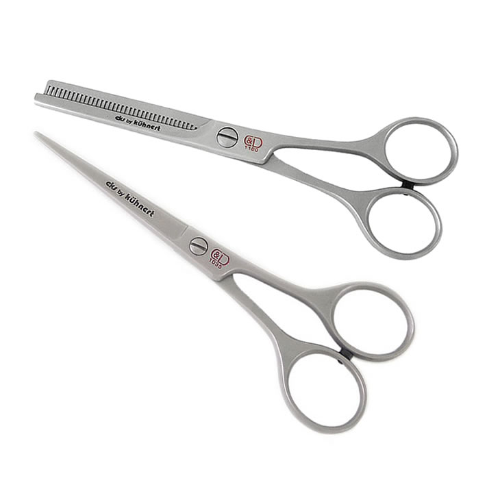 EKS Classic Scissor and Thinner Set. Classic style scissors with one micro serrated blade.