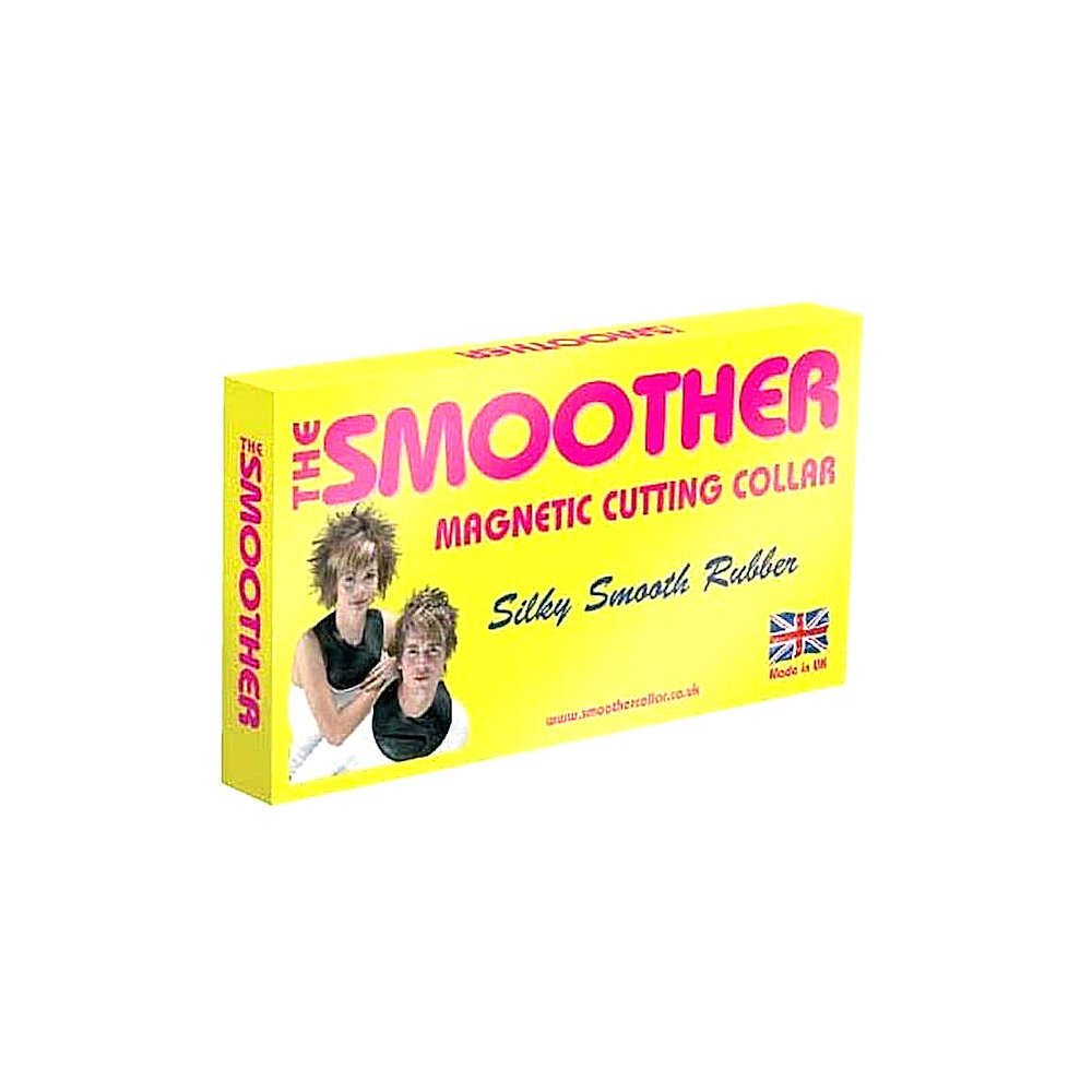 The Smoother Magnetic Cutting Collar, popular black cutting collar with contoured shoulder for greater customer comfort and maximum protection from loose hair. Made from soft, flexible rubber with a magnetic multi fit fastening to fit your customers exact neck size.
